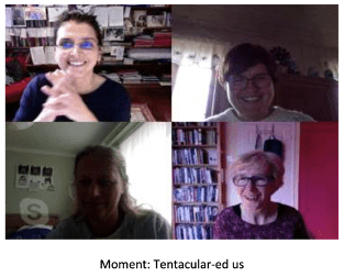 “We wanted to trouble the normative modes of recognition and respectability that academic positionality hails into being. As feminist academics our ‘call to action’ aims to explore how educational research, pedagogy and political practice can be reconfigured. As PhEmaterialists, we turn to new material feminist and posthuman thinkers to reveal not just that but how ‘we four’ as writers, thinkers, academics are tentacularly connected to the wider feminist community. String is passed back and forth creating relations between ‘us’ who are not four and not one but many. Stringing encounters urge us to stay with the feminist trouble; stringing enact and realise our thinkings-feelings-doings-becomings in higher education.